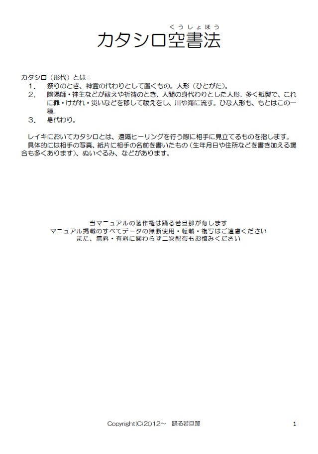カタシロ空書法はレイキ遠隔ヒーリングの拡張技法であり、レイキ2nd以上の方を対象としています。